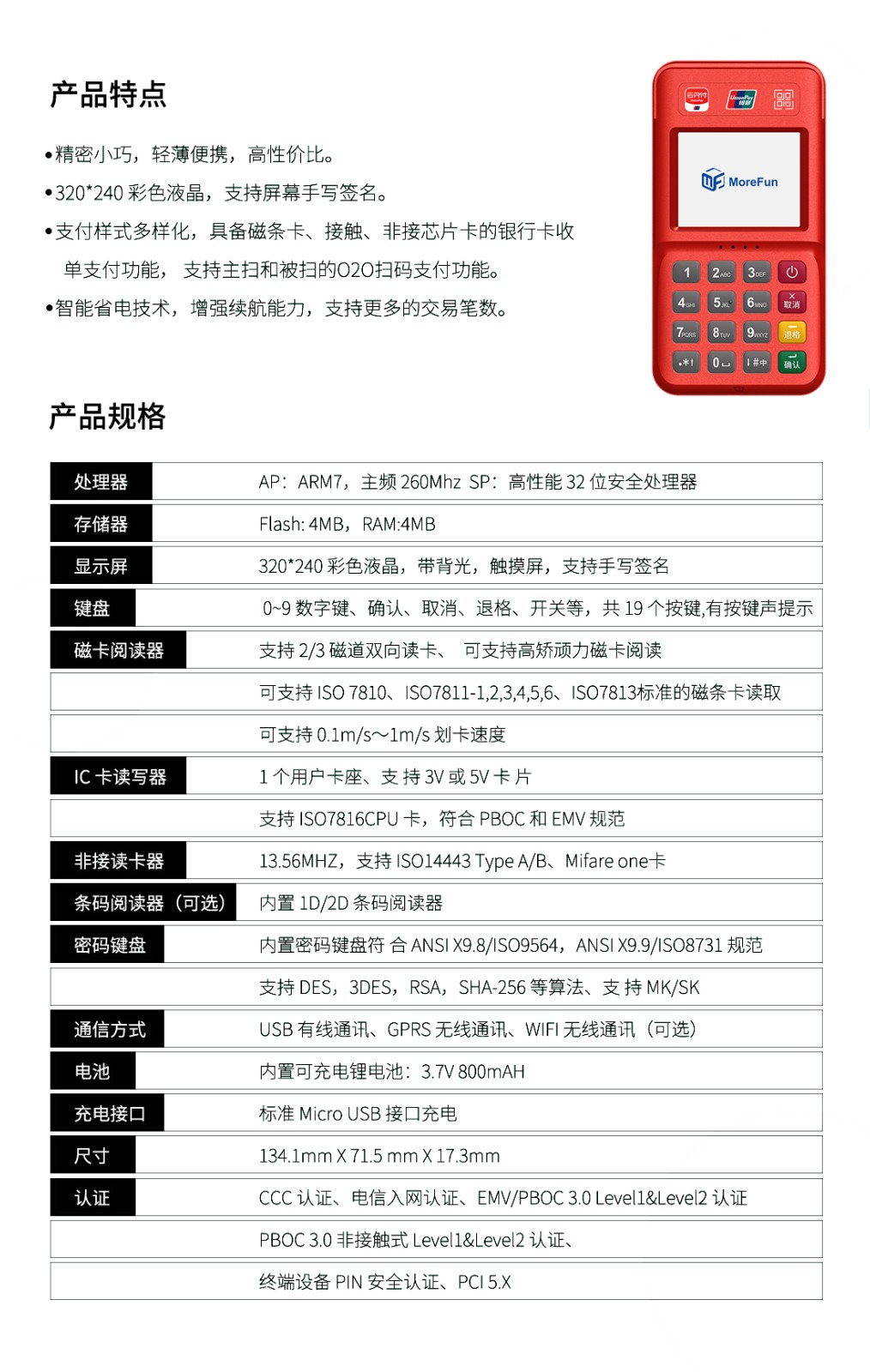 首页>>路北产品中心>>路北手持无线POS 路北联动优势-优POS Pro 高配版 * 性能优越:32位高性能ARM11安全CPU;整机通过业内更先进的PCI PED4.X 安全认证及国内受理终端PIN输入设备安全评估检测认证,多项措施保障金融交易的安全;* 时尚外观:外形小巧携带方便,高抗跌落性能、宽工作温度、防水防尘设计、外壳坚固耐刮、户外携带式作业更加耐久可靠。* 通讯备份:支持2G-3G扩展;* 超长续航:3.7V-800毫安稳定续航能力,智能电池管理保证持续工作18小时,待机72小时。 标准配置 返 回